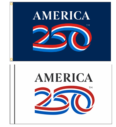 America 250th Commemorative Flags and made in USA from high quality nylon with bras grommets and heavy canvas heading