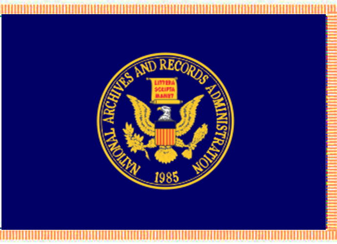 National Archives and Records Administration Indoor Presentation Flags and made in USA from high quality nylon with pole sleeve and golden fringe.