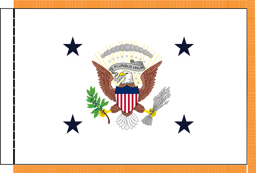 United States Vice President (VPOTUS) indoor presentation flags are made in USA from high quality nylon with pole sleeve and golden fringe.