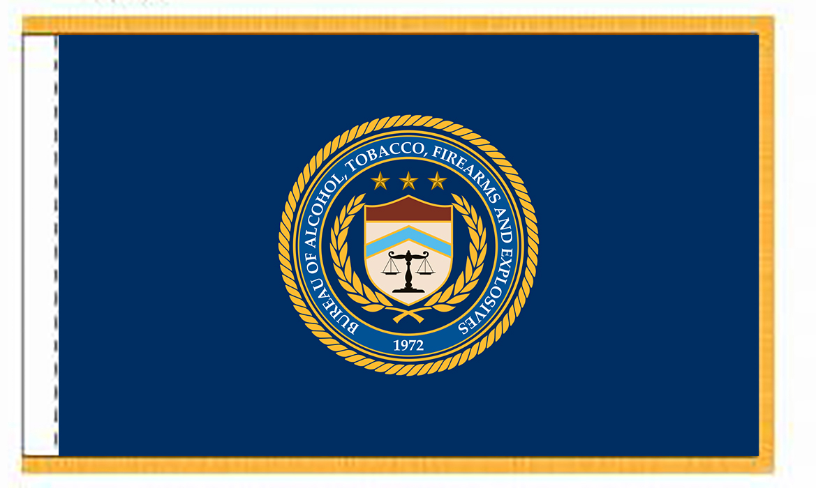 US Dept of Energy Presentation Flag Sets include: 3x5 ft or 4x6 ft flag with pole sleeve and golden fringe, golden tassels, 8ft oak pole with spear, 12'' golden floor stand