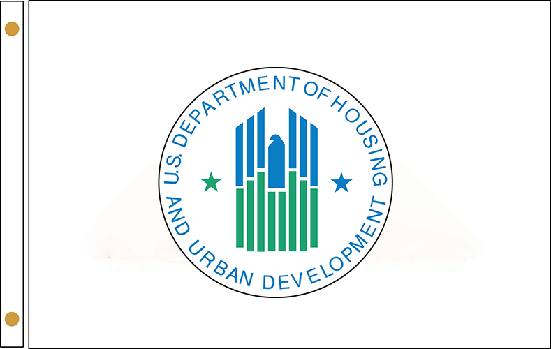 US Dept. of Housing and Urban Development Flags are made from high quality nylon with brass grommets. All flags are made on USA only with American labor & materials