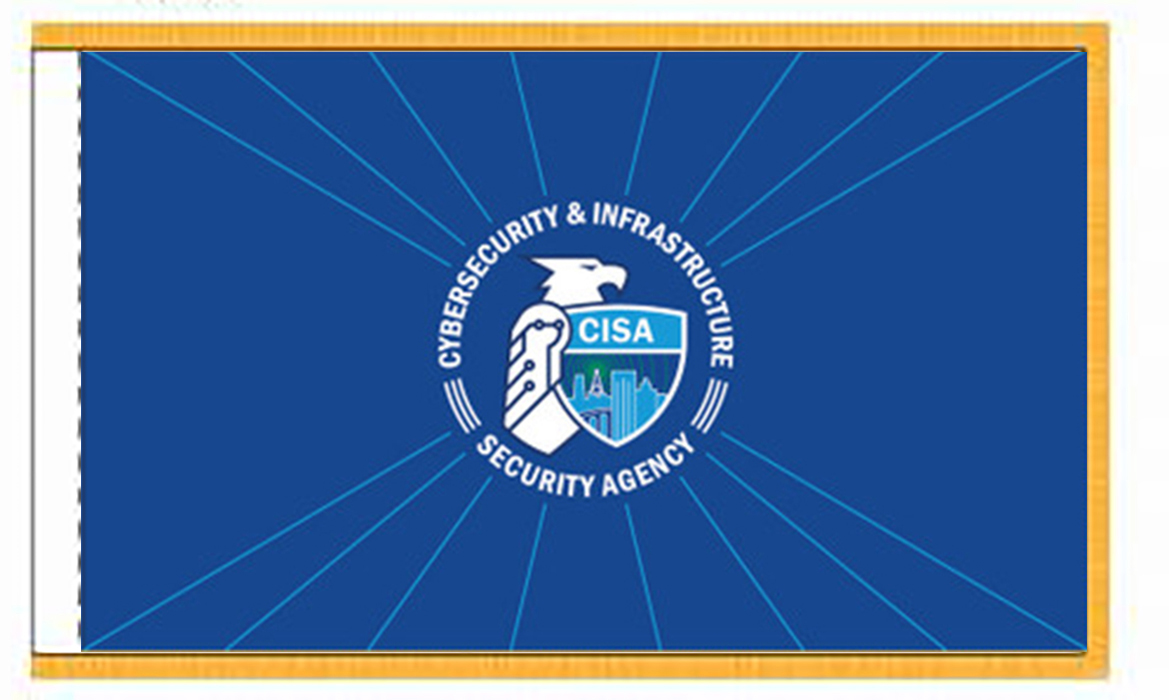 The Cybersecurity and Infrastructure Security Agency (CISA) Indoor Presentation flags are digitally printed on high quality nylon with pole sleeve and golden fringe.