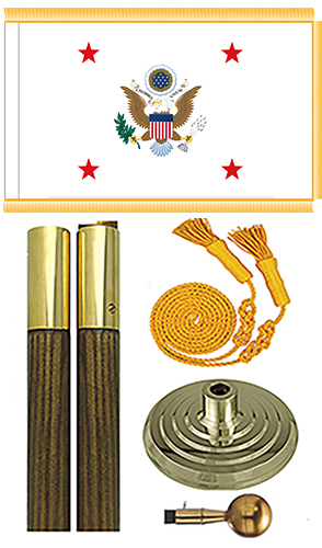 Assistant Secretary of War Indoor, Presentation flag sets are made from high quality nylon. Flag set include: 3x4 ft or 3x5 ft flag with with pole sleeve and golden fringe, 8 ft oak pole with golden ball, golden tassels, 12'' golden floor stand.