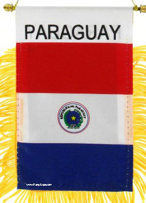 Paraguay Mini Banner for car mirrors 4x5 inches with golden fringe
