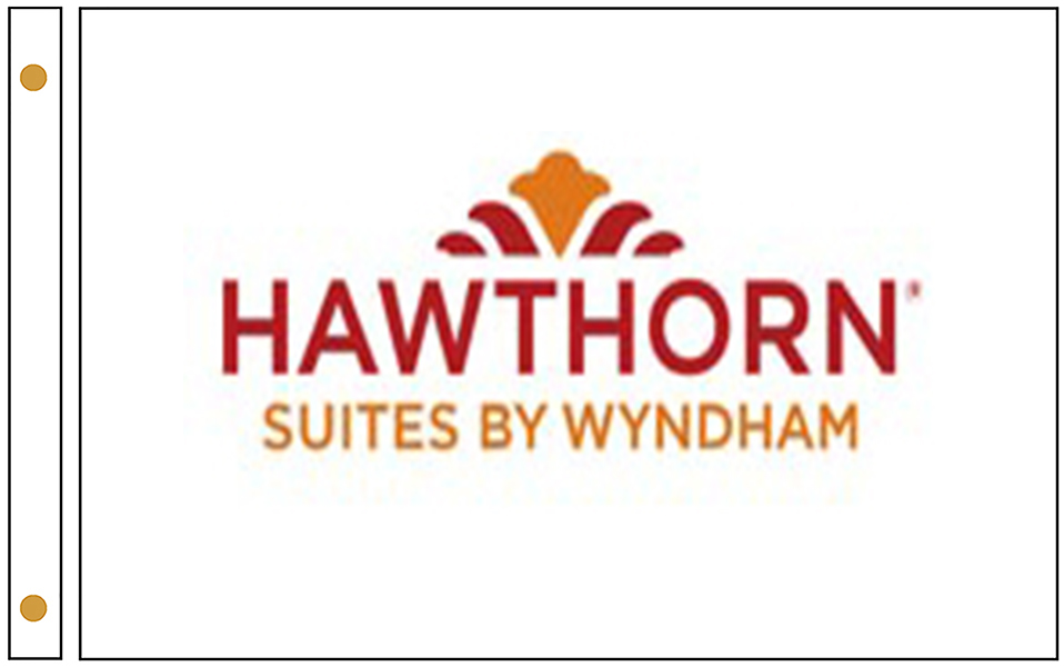 Hawthorn Hotel Suites Flags are made from high quality nylon with brass grommets. All flags are single-reversed construction and the image is on both sides of the flag.