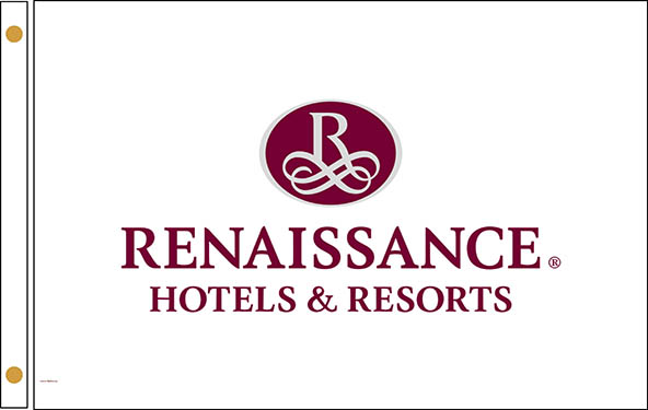 Renaissance Hotel Flags White are made from high quality nylon to use outdoors or indoors. All flags are single-reversed construction and the image is on both sides of the flag.