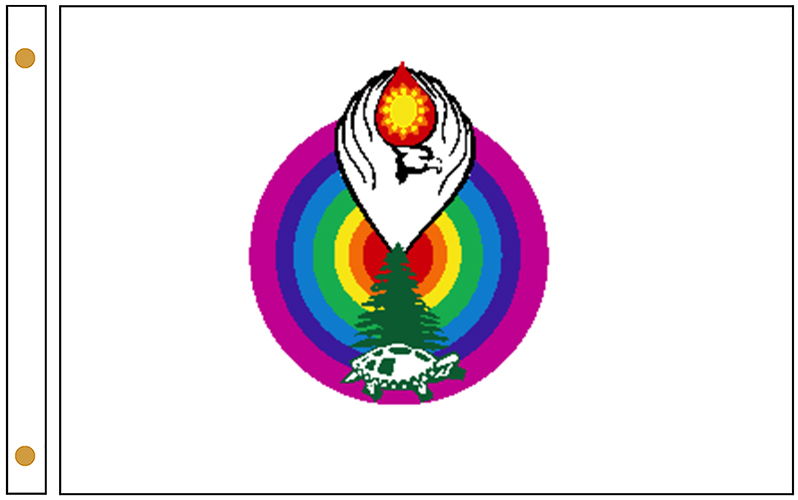 Powhatan Renape Nation of NJ Flags are made from high quality fabric with brass grommets. Indoor Presentation Flag set include: 8 feet oak pole, gold spear, tassels, 3x5 ft flag with golden fringe, 12'' golden floor stand.