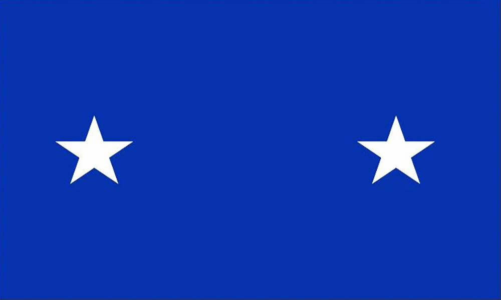 US Air Force Major General Flags are made in USA from high quality nylon. Indoor Parade flags made with pole hem and golden fringe. Presentations Flag Set: 3x5 ft flag with pole hem and golden fringe, oak flagpole, spear, golden tassels, floor stand.