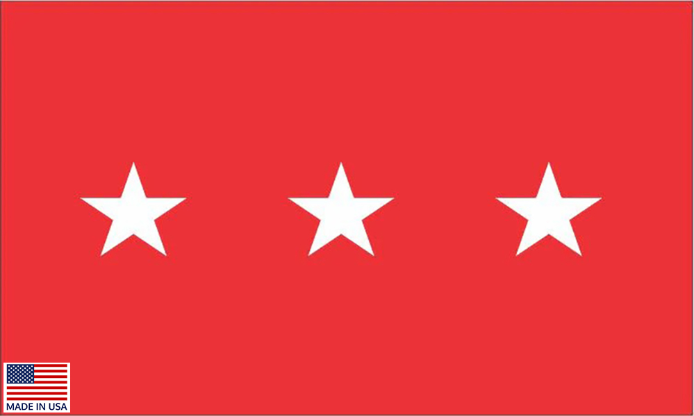 US Army Lt General Flags are made in USA from high quality nylon. Indoor Parade flags made with pole hem and golden fringe. Presentations Flag Set: 3x5 ft flag with pole hem and golden fringe, oak flagpole, spear, golden tassels, floor stand.