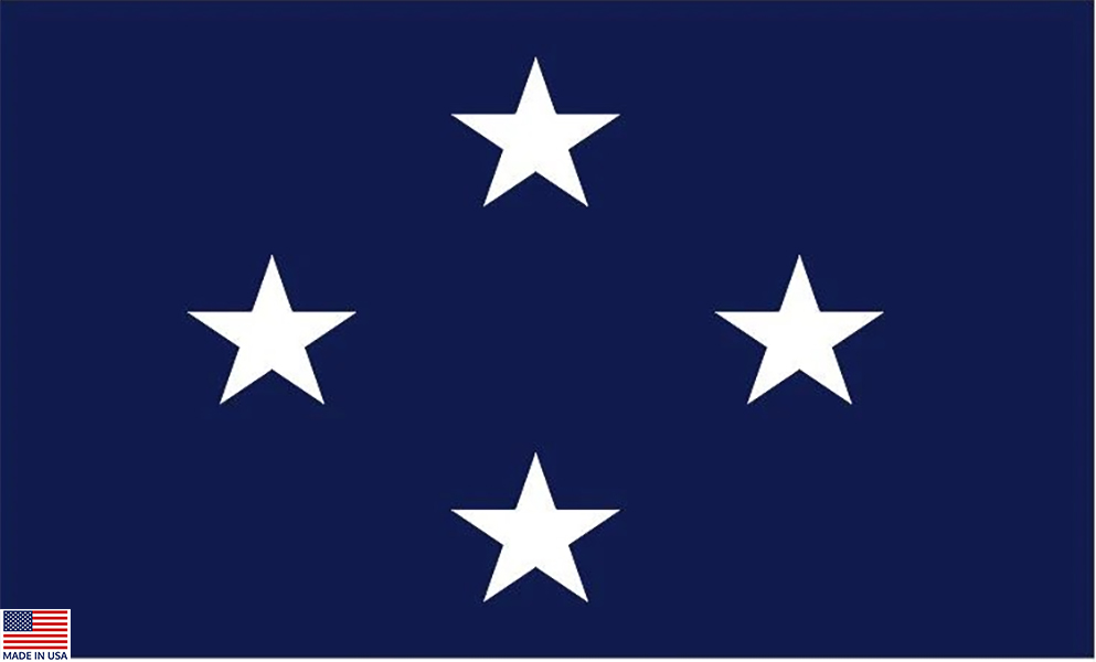 US Navy Admiral Flags are made in USA to US Government Design Specifications from high quality nylon with brass grommets, two rows of stitching. Indoor Flags are made with pole hem and golden fringe. Presentations Flag Set: 3x5 ft flag with pole hem and golden fringe, oak flagpole, spear, golden tassels, floor stand.