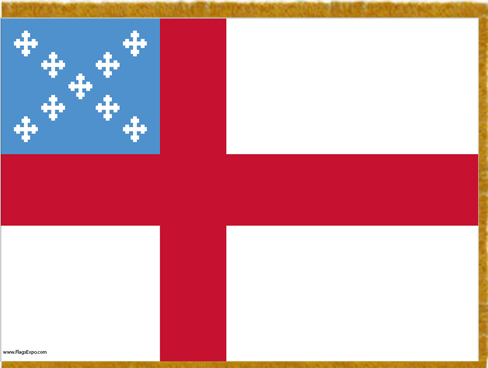 Episcopal flag was adopted in 1940 in the Cathedral of the Incarnation, Garden City in the Diocese of Long Island NY in a show case is what is claimed to be the original Episcopal Flag, It was designed by a member of the Cathedral William M. Baldwin who was a diocesan delegate to General Convention.