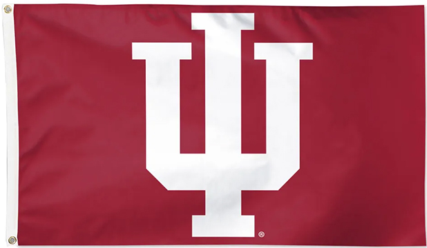 Indiana Hoosiers College Flags manufactured of heavyweight fabric and carefully screen printed with the official team logo and color. Finished with strong canvas header & brass grommets. Officially licensed by the Collegiate Licensing Company.