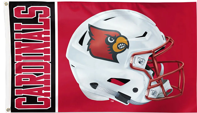 Louisville Cardinals College Flags manufactured of heavyweight fabric and carefully screen printed with the official team logo and color. Finished with strong canvas header & brass grommets. Officially licensed by the Collegiate Licensing Company