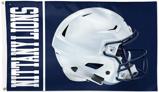 Penn State College Flags manufactured of heavyweight fabric and carefully screen printed with the official team logo and color. Finished with strong canvas header & brass grommets. Officially licensed by the Collegiate Licensing Company.