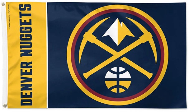 Denver Nuggets Officially licensed 3' x 5' Deluxe flag with premium durable fabric, two grommets and quality stitching including a quad stitched fly end. The vibrant imprint is 100% show through to the backside with a long lasting color-fast dye. Made in USA. Fly on a flagpole or hang it on a wall
