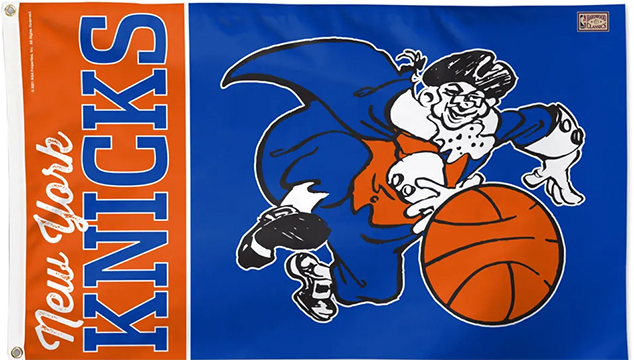 New York Knicks Officially licensed 3x5' Deluxe flags with premium durable fabric, two grommets and quality stitching including a quad stitched fly end. The vibrant imprint is 100% show through to the backside with a long lasting color-fast dye Made in USA. Fly on a flagpole or hang it on a wall
