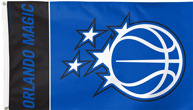 Orlando Magic Officially licensed 3x5' Deluxe flags with premium durable fabric, two grommets and quality stitching including a quad stitched fly end. The vibrant imprint is 100% show through to the backside with a long lasting color-fast dye Made in USA. Fly on a flagpole or hang it on a wall
