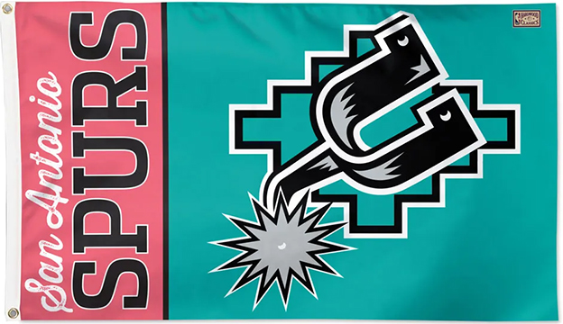 San Antonio Spurs Officially licensed 3x5' Deluxe flag with premium durable fabric, two grommets and quality stitching including a quad stitched fly end. The vibrant imprint is 100% show through to the backside with a long lasting color-fast dye. Made in USA. Fly on a flagpole or hang it on a wall
