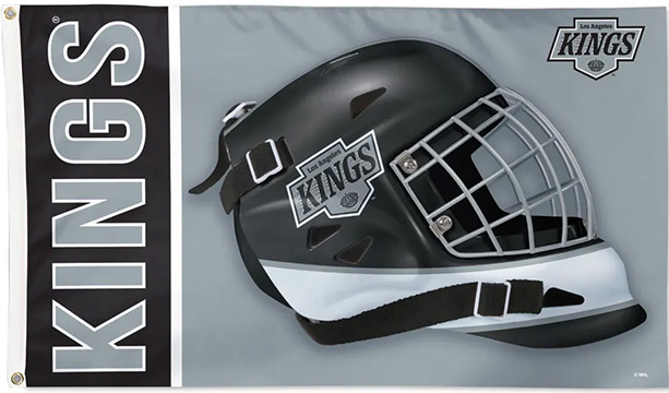 Los Angeles Kings Hockey Flags. Officially licensed 3' x 5' flag with attached D-rings. The imprint is 100% show through to the backside with a long lasting color-fast die. Fly on a flagpole or hang it on a wall. Flags come poly-bagged with header and graphic displayed. Made in USA.