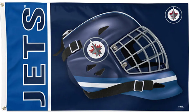 Winnipeg Jets Flags are officially licensed 3x5 feet flag with attached D-rings. The imprint is 100% show through to the backside with a long lasting color-fast die. Fly on a flagpole or hang it on a wall.