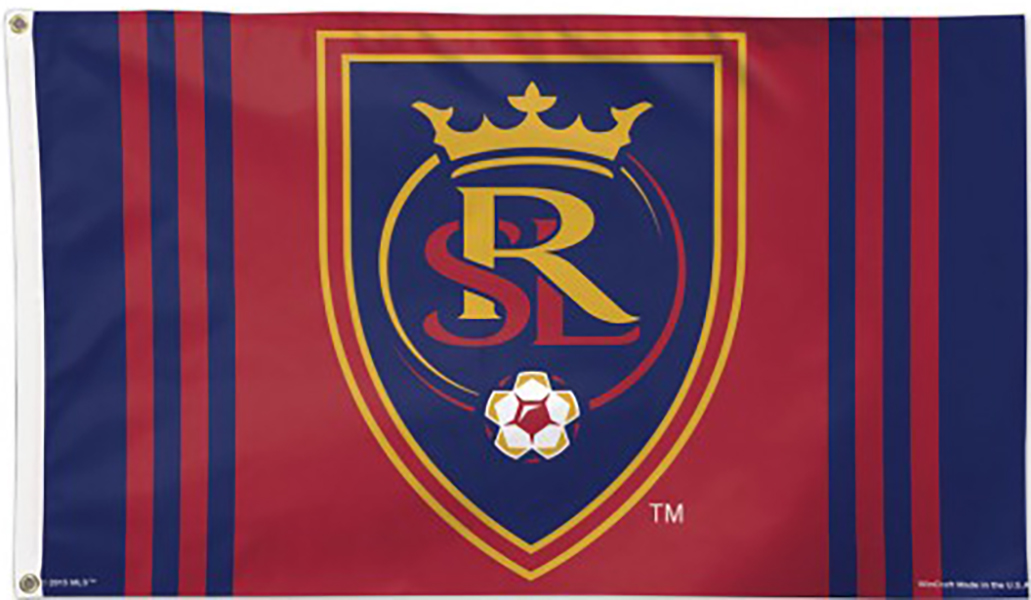 Real Salt Lake Soccer team flags. Officially licensed 3x5 feet Deluxe flag with premium durable fabric, two grommets and quality stitching including a quad stitched fly end. The vibrant imprint is 100% show through to the backside with a long lasting color-fast dye. Fly on a flagpole or hang it on a wall