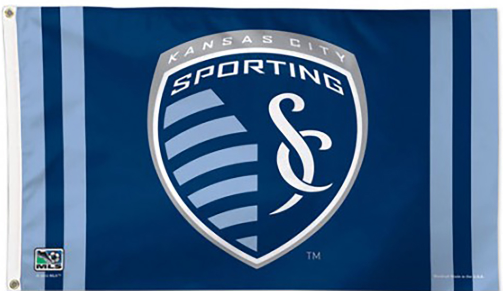 Sporting Kansas City Soccer Team Flag Officially licensed 3x5 feet Deluxe flag with premium durable fabric, two grommets and quality stitching including a quad stitched fly end. The vibrant imprint is 100% show through to the backside with a long lasting color-fast dye. Fly on a flagpole or hang it on a wall