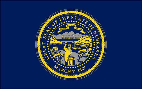 Nebraska State Flag was adopted in 1925. It features the 1867 state seal charged on the center in gold and silver on a field of national blue. That seal is representative of