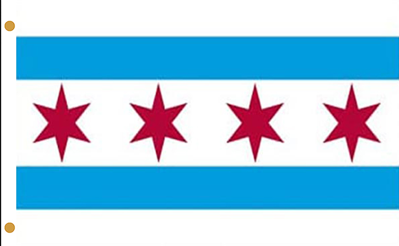 City of Chicago IL Flags are made from high quality material, Indoor Presentation Flag set include: 3x5 ft nylon flag with golden fringe, 8 ft oak pole with spear, golden tassels, 12 inches golden floor stand