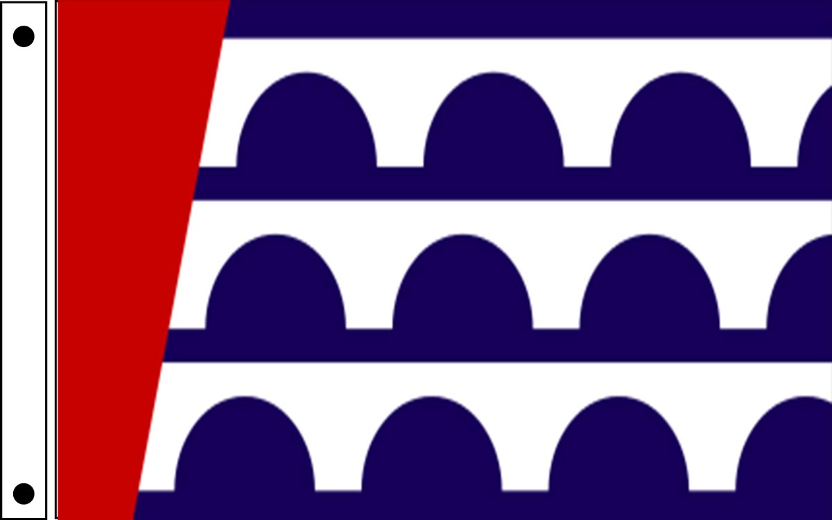 Des Moines Iowa city flags are made in USA from high quality nylon with pole hem and brass grommets, Indoor Presentation Flag set include: 3x5 ft nylon flag with golden fringe, 8 ft oak pole with spear, golden tassels, 12 inches golden floor stand.