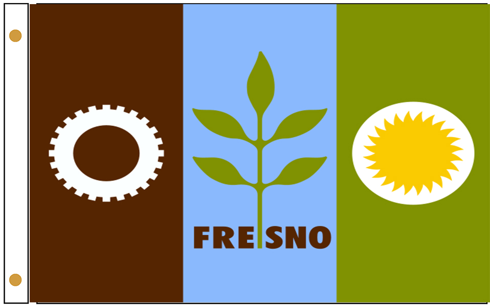 Fresno California Flags are made from high quality nylon. Indoor Presentation Flag set include: 3x5 ft nylon flag with golden fringe, 8 ft oak pole with spear, golden tassels, 12 inches golden floor stand