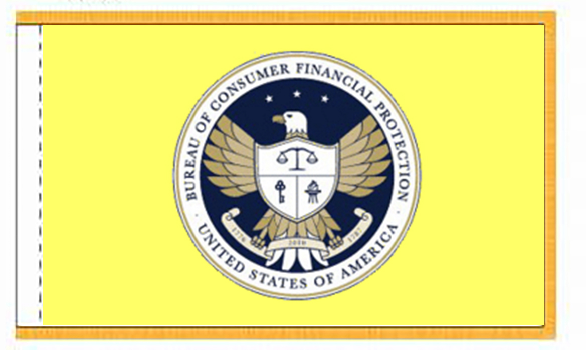 Consumer Financial Protection Bureau CFPB flags are made from high quality nylon with brass grommets or pole sleeve and golden fringe. These Flags are made to order only; if not in stock, please allow up to 15 days for delivery. All our custom order flags are digitally printed, single sided reversed and made in USA Are you aware? The Consumer Financial Protection Bureau (CFPB) is an agency of the United States government responsible for consumer protection in the financial sector.