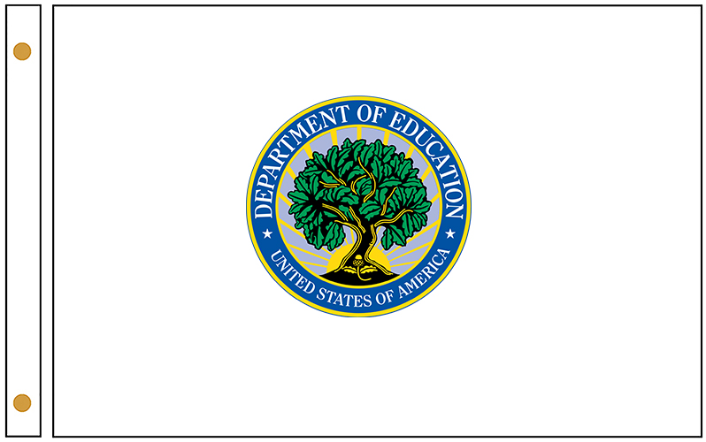 US Department of Education flags are made in USA from high quality nylon with brass grommets or pole sleeve and golden fringe. All our custom order flags are digitally printed, single sided reversed and made in USA . Are you aware? US Department of Education was created in 1979 and has a budget more than 70 billion