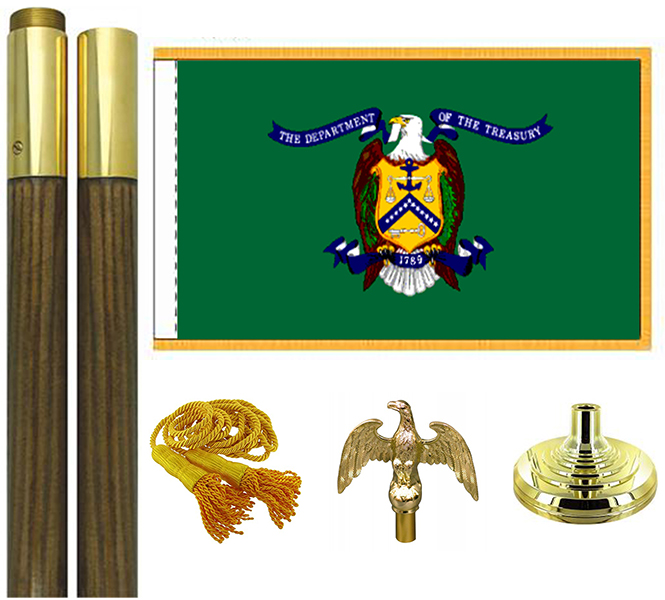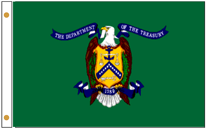 US Dept of Treasury Flags are made from high quality nylon with and golden grommets or pole sleeve with golden fringe. All our custom order flags are digitally printed, single sided reversed and made in USA Are you aware ? US Dept of treasury history begins in 1789