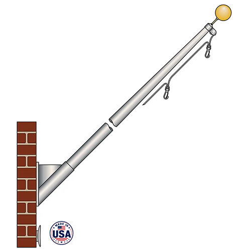 Outrigger External Halyard Aluminum Flagpoles standard accessories • Gold anodized aluminum ball ornament • Cast aluminum stationary truck • Solid braided polyester halyard • Swivel flag snaps with vinyl covers • Cast aluminum cleat with mounting screws • Cast aluminum mounting bracket • Mounting bolts with expansion shields are supplied as standard.