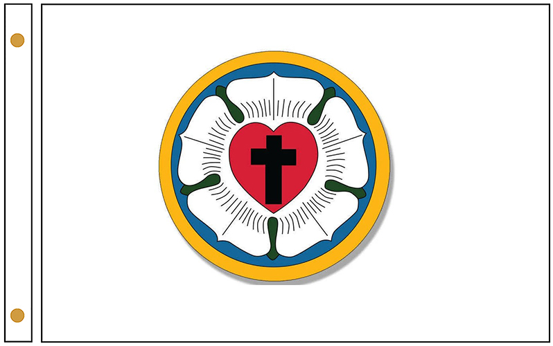 Lutheran Church Flags are made in USA from high quality nylon with brass grommets. Indoor church flags are made with pole hem and golden fringe. Are you aware? Lutheranism is a major branch of Protestantism that launched the Reformation in 1517.Lutheranism subsequently became the state religion of many parts of Northern Europe, starting with Prussia in 1525.