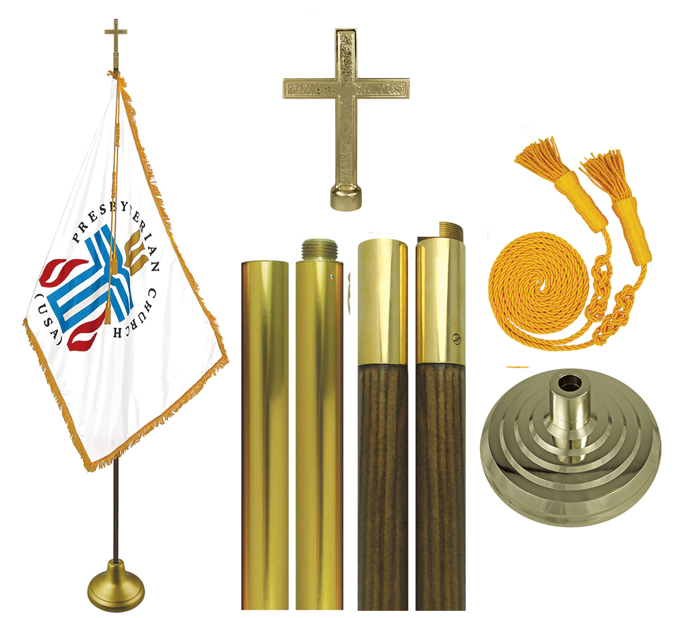 Presbyterian flags trace their history to the sixteenth century and the Protestant Reformation. Presbyterian heritage, and much of what they believe, began with the French Lawyer John Calvin (1509-1564) All Pesbyterian Flags are made with heavy duty nylon, screen dyed in bright colors, white headers and brass grommets. Presbyterian Church/Parade flags are made with pole sleeve and golden fringe